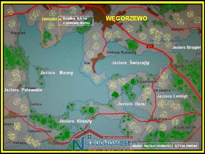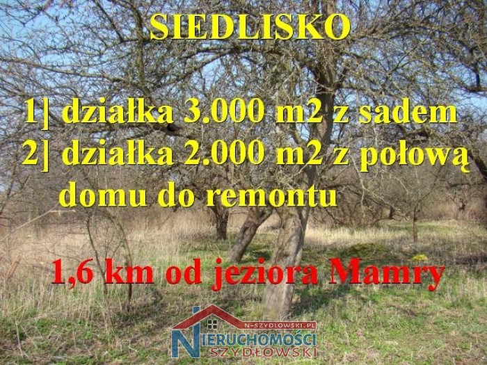 Media: energia elektryczna, szambo i studnia, a w trakcie realizacji kanalizacja i wodociąg. Na dzień dzisiejszy teren nie uporządkowany, w trakcie inwestycji. Sad z ok. 90 drzewami oraz krzewami owocowymi. Jezioro Mamry 1,6 km, Węgorzewo 3 km, dojazd drogą gminną gruntowa 860 m od asfaltu. POLECAMY.
