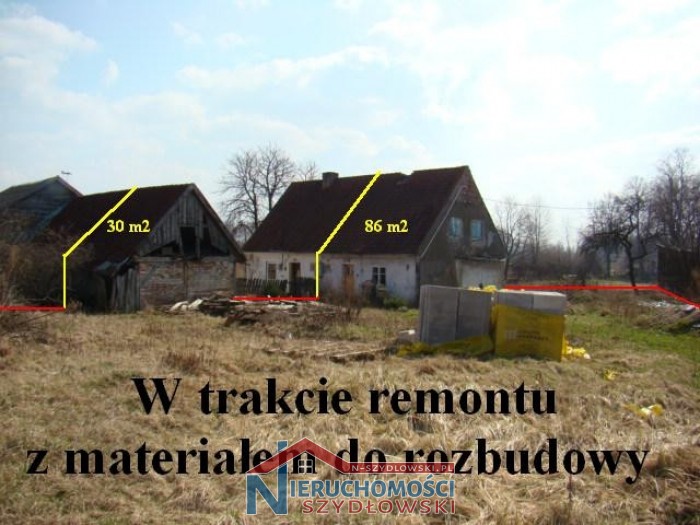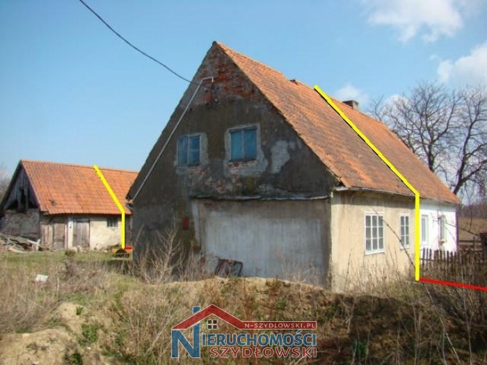 Siedlisko o powierzchni 5.000 m2, w skład którego wchodzą działka będąca sadem o pow. 3.000 m2 oraz działka o pow. 2.000 m2, zabudowana przedwojennym budynkiem mieszkalnym w zabudowie bliźniaczej o pow. 86 m2 oraz budynkiem gospodarczym, także w zabudowie bliźniaczej o pow. 30 m2. Budynek mieszkalny (podpiwniczony) w trakcie generalnego remontu. Wydana także decyzja o warunkach zabudowy, przewidująca rozbudowę w/w budynku od strony wschodniej o 36 m2 zabudowy, przykrytej zadaszonym tarasem. Konstrukcja murowana tradycyjna. Decyzja zezwala także na budowę garażu dwustanowiskowego o pow. 42 m2.